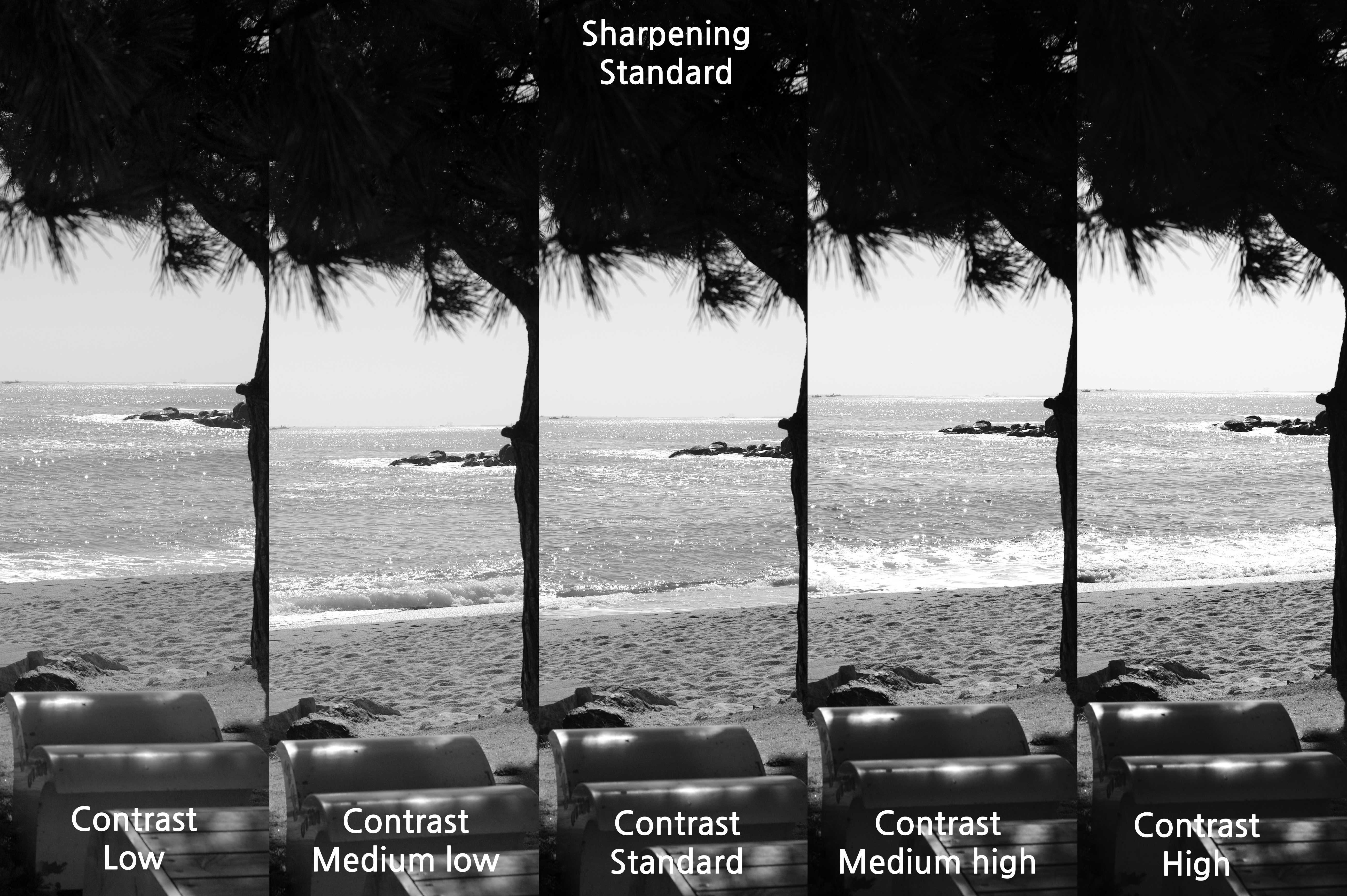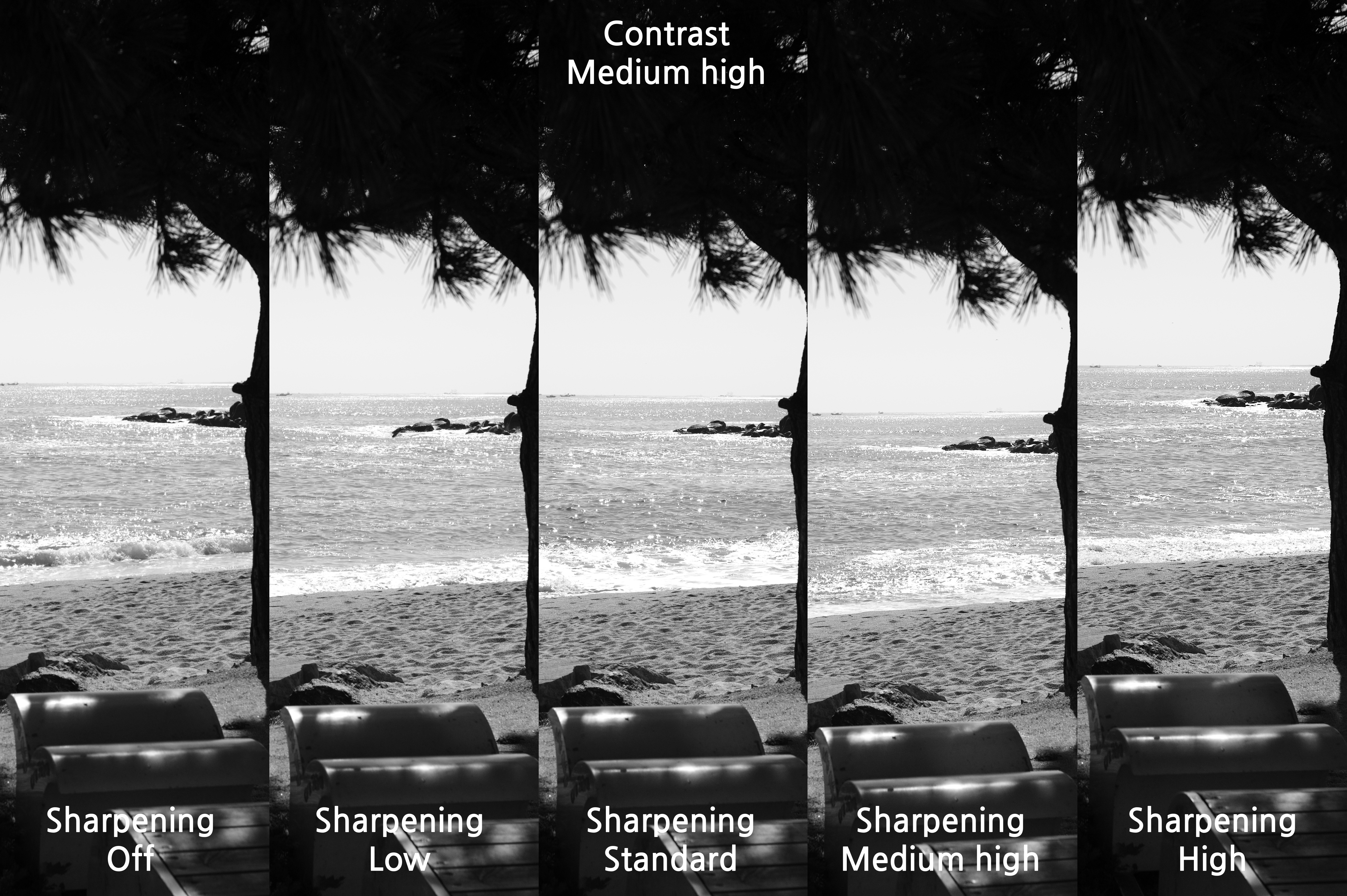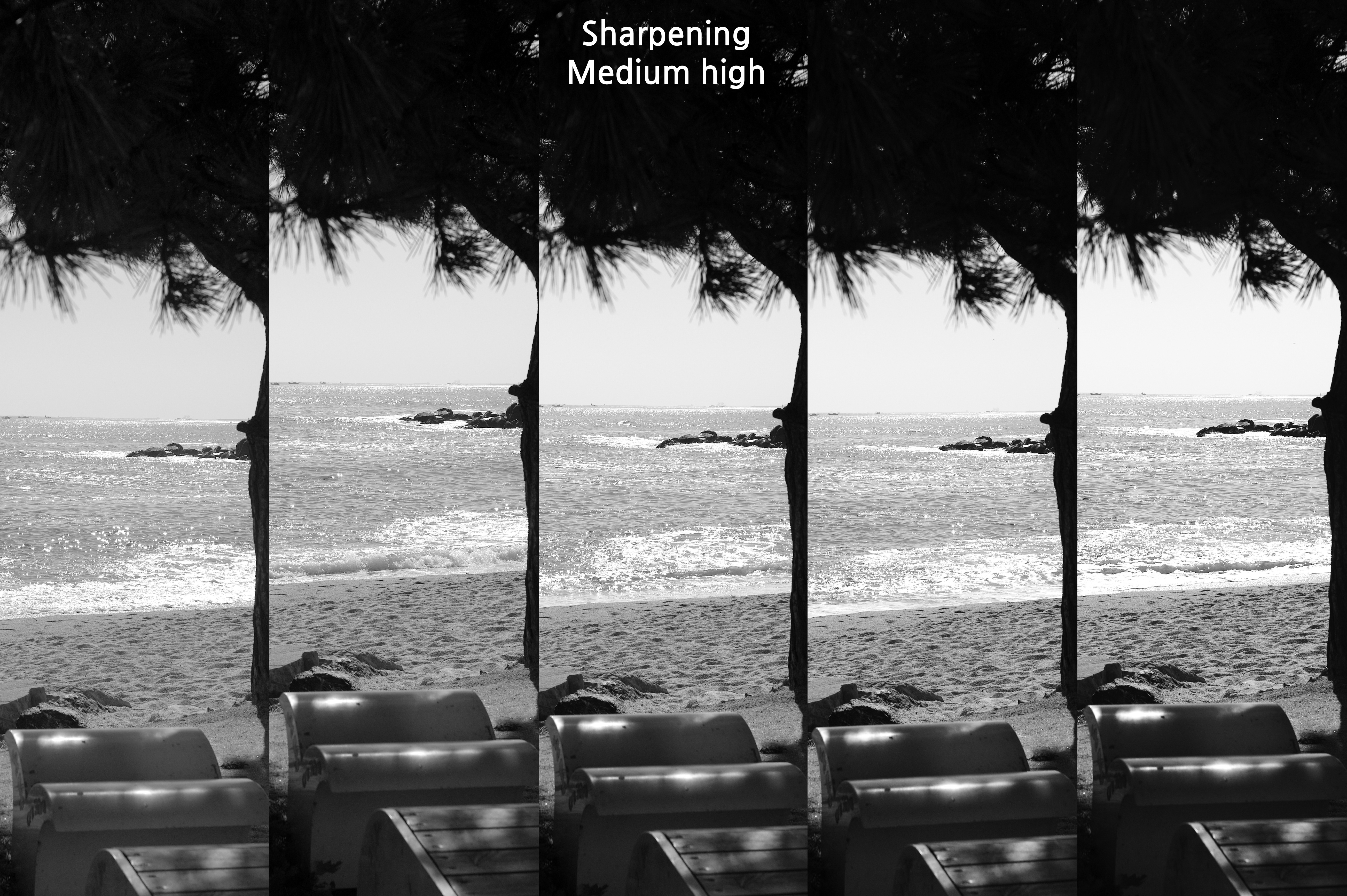 그래서 대비를 Medium high로 했을 때를 선명도에 따라 어떤 차이가 있는지 살펴 보았다.