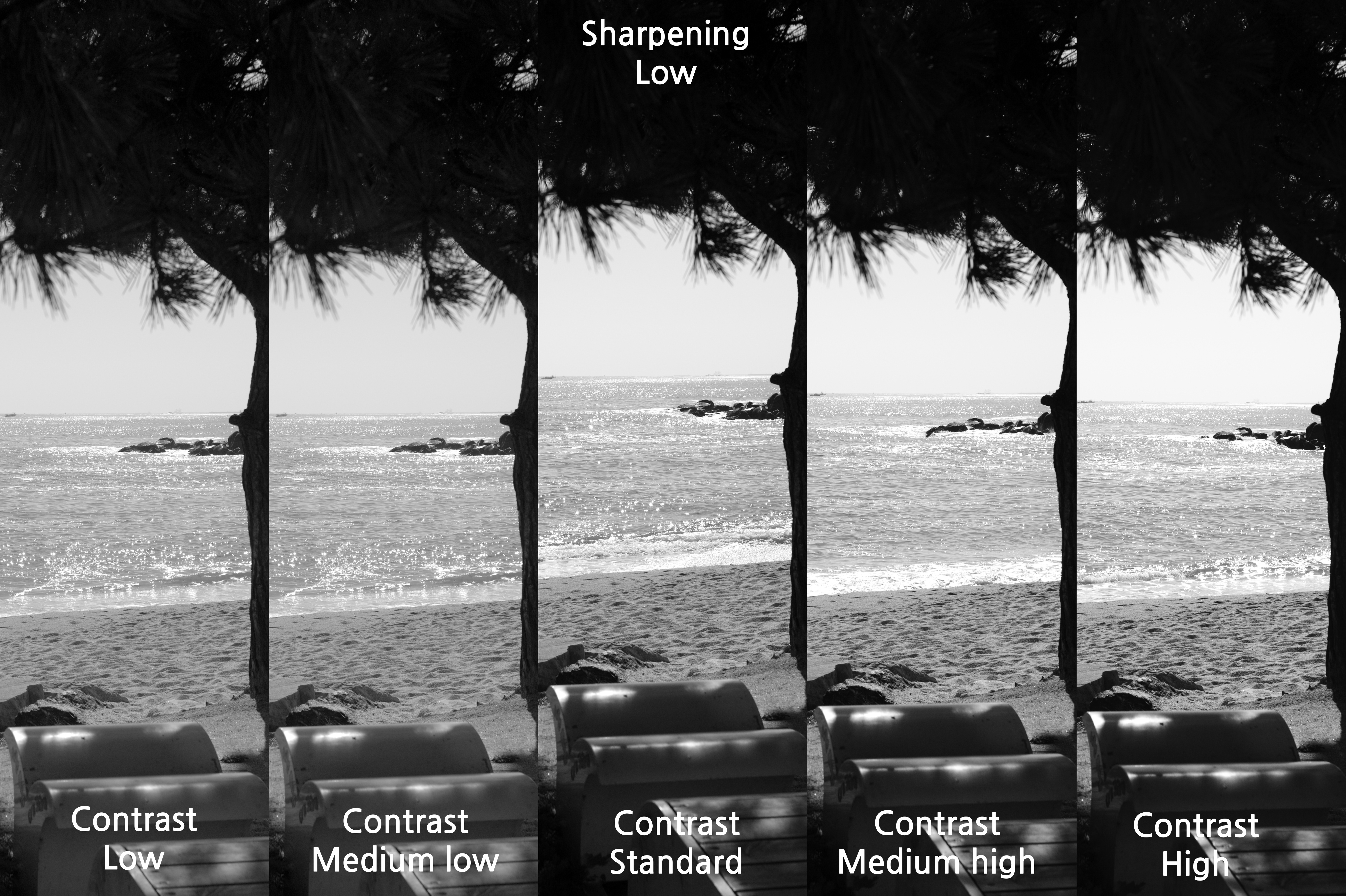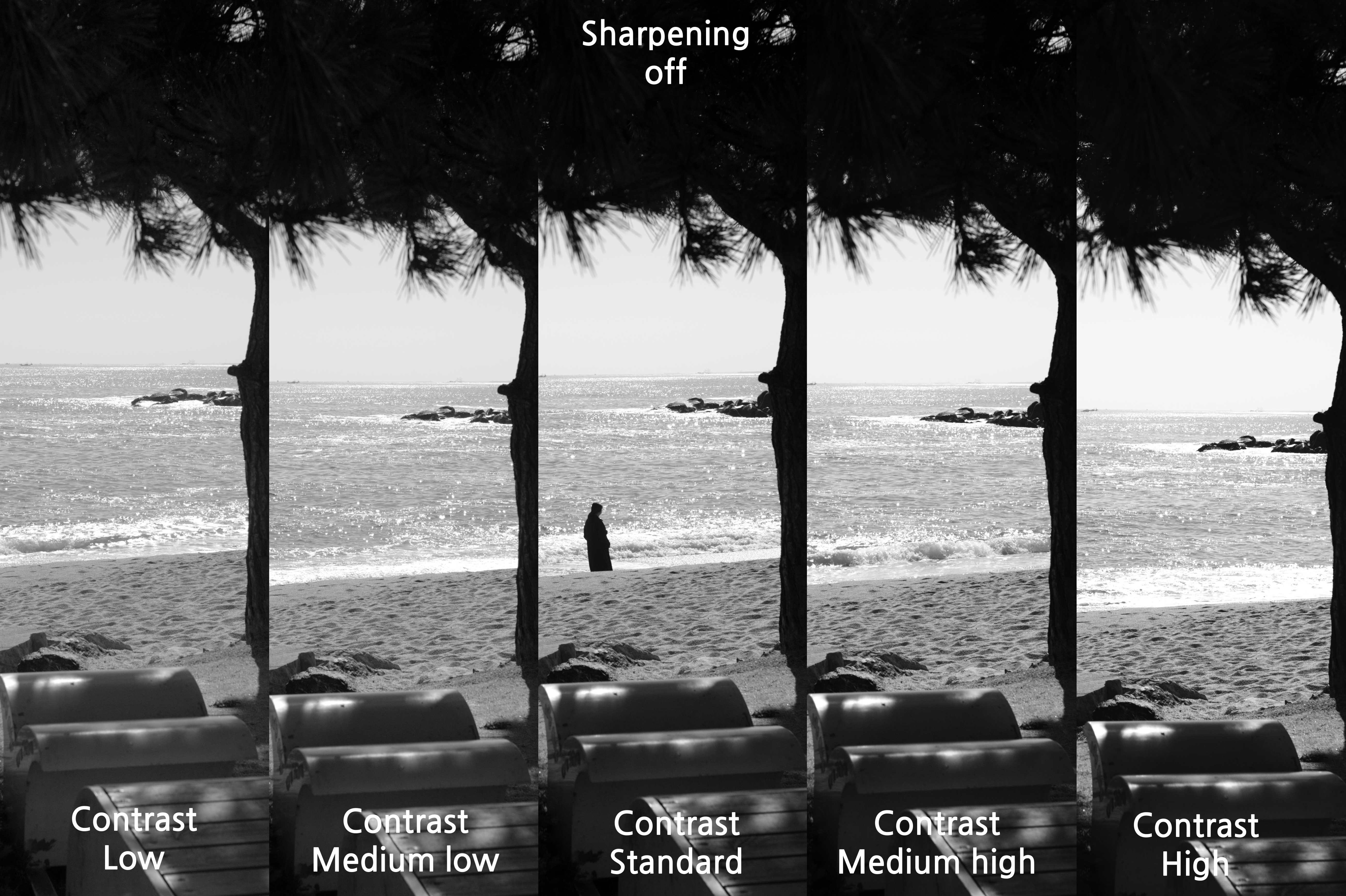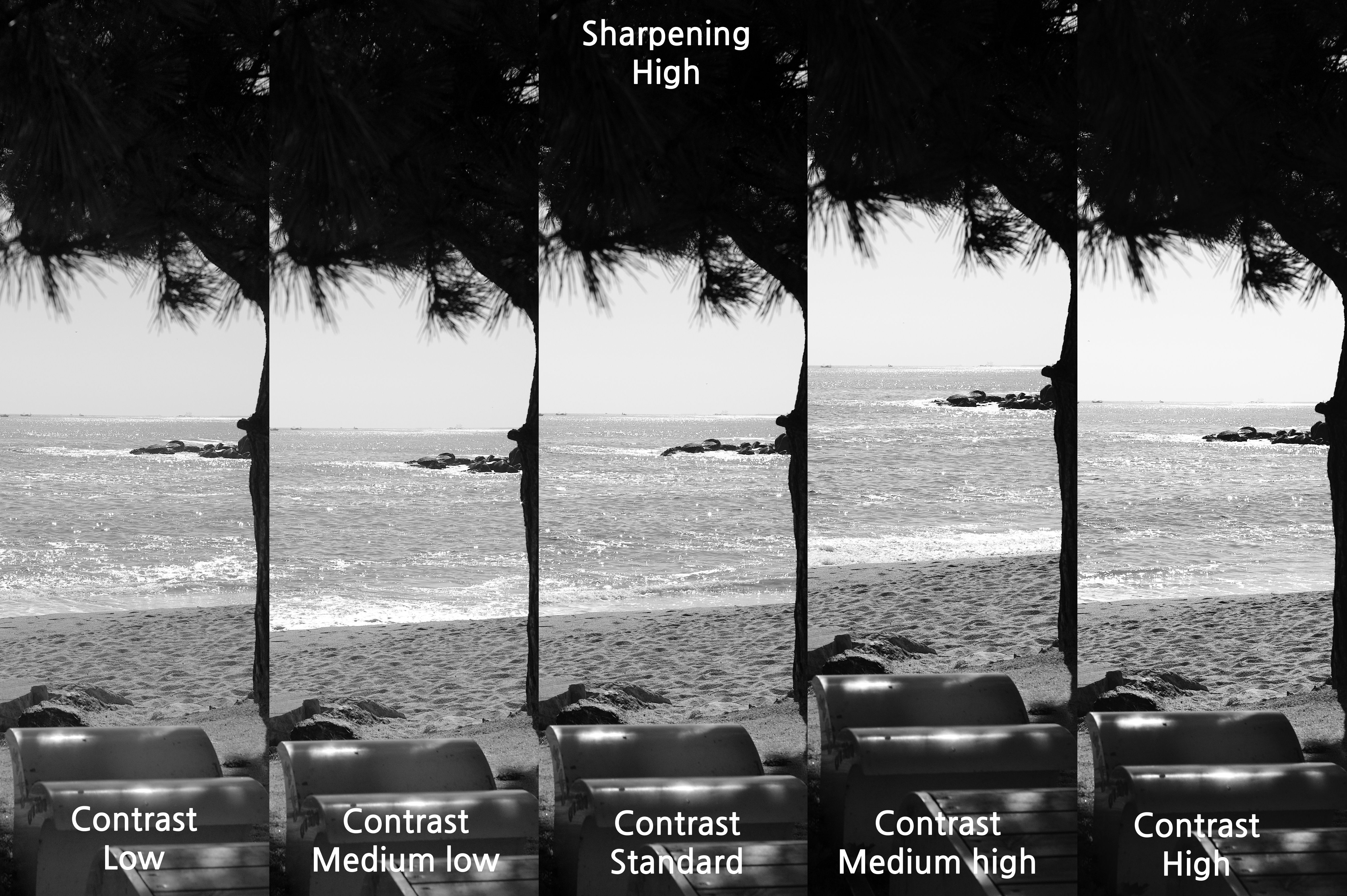 그래서 대비를 Medium high로 했을 때를 선명도에 따라 어떤 차이가 있는지 살펴 보았다.