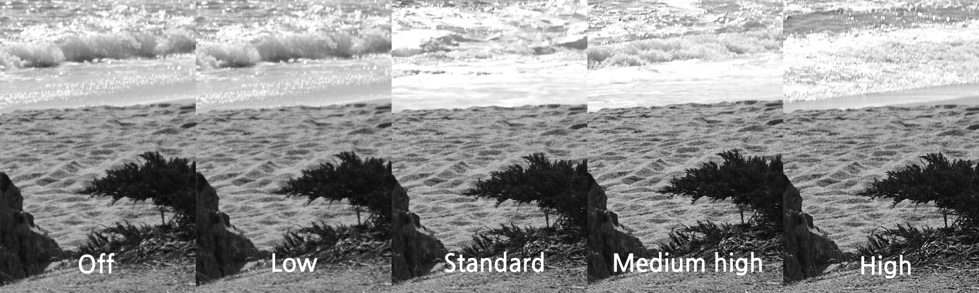 선명도는 내 눈에는 Stanard와 Medium high의 차이를 잘 느끼지 못했다.