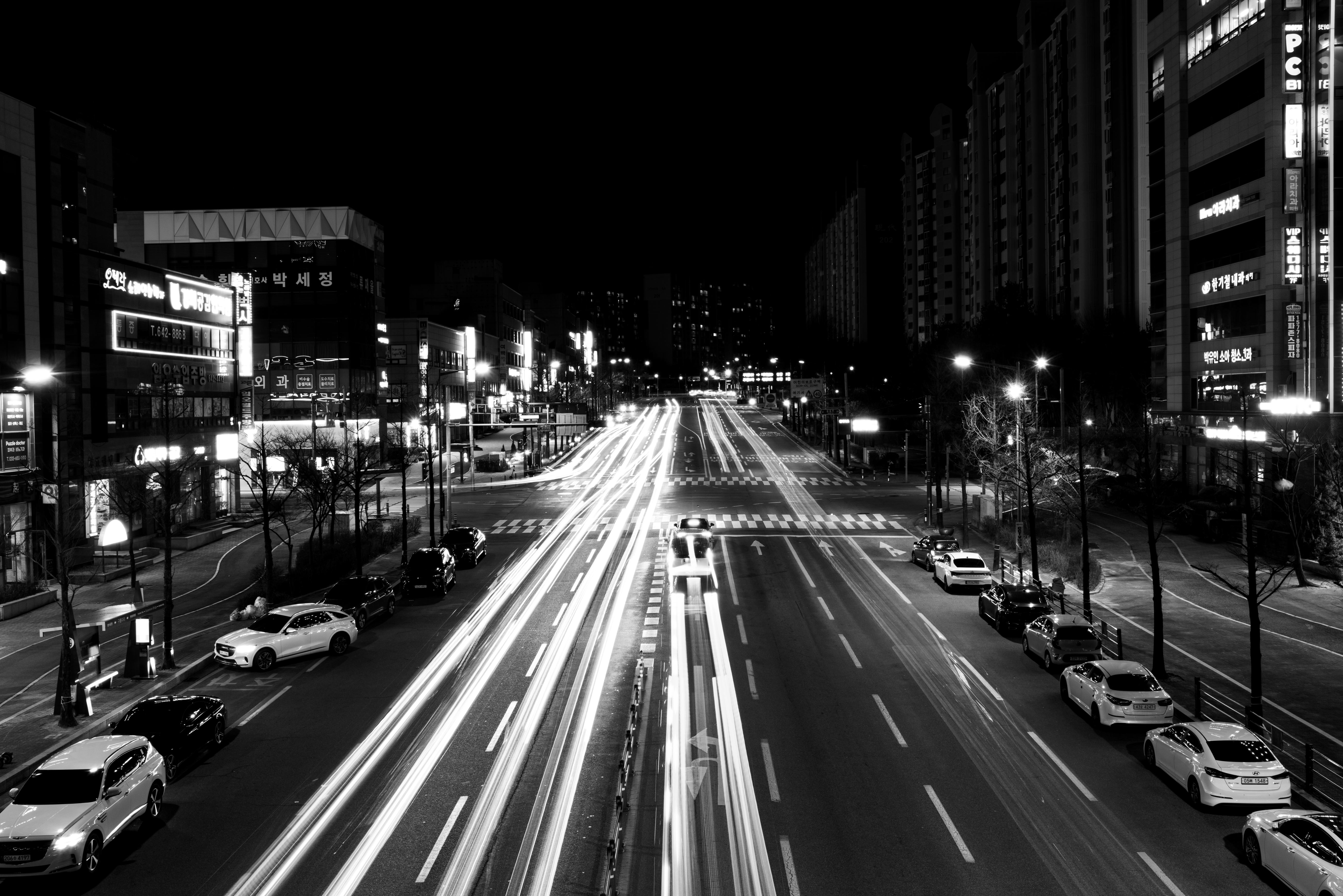 고요한 밤 도시 위 빛의 흐름이 별처럼