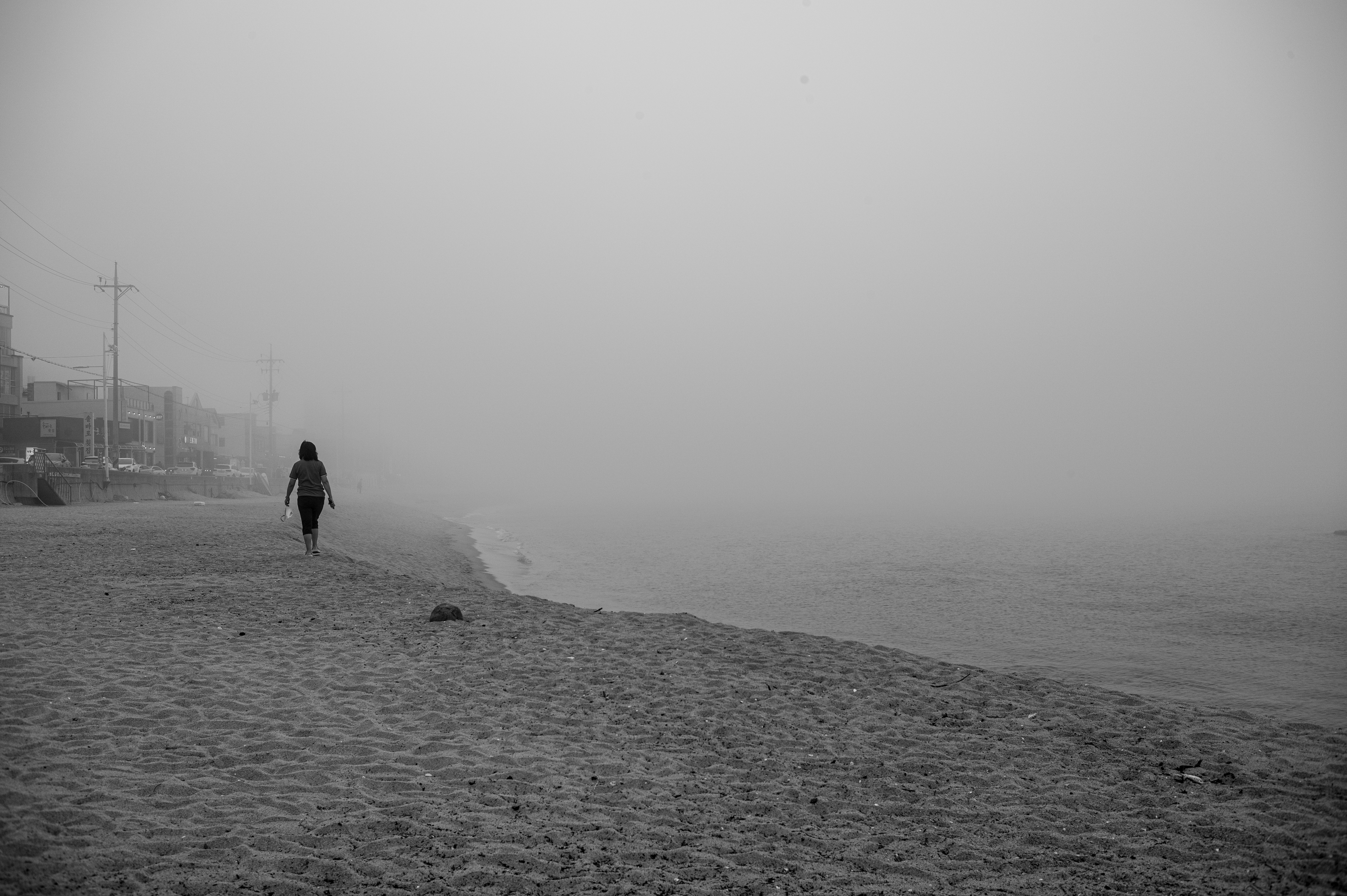 다음은 물안개가 짙게 드리운 날 찍은 흑백사진이다.