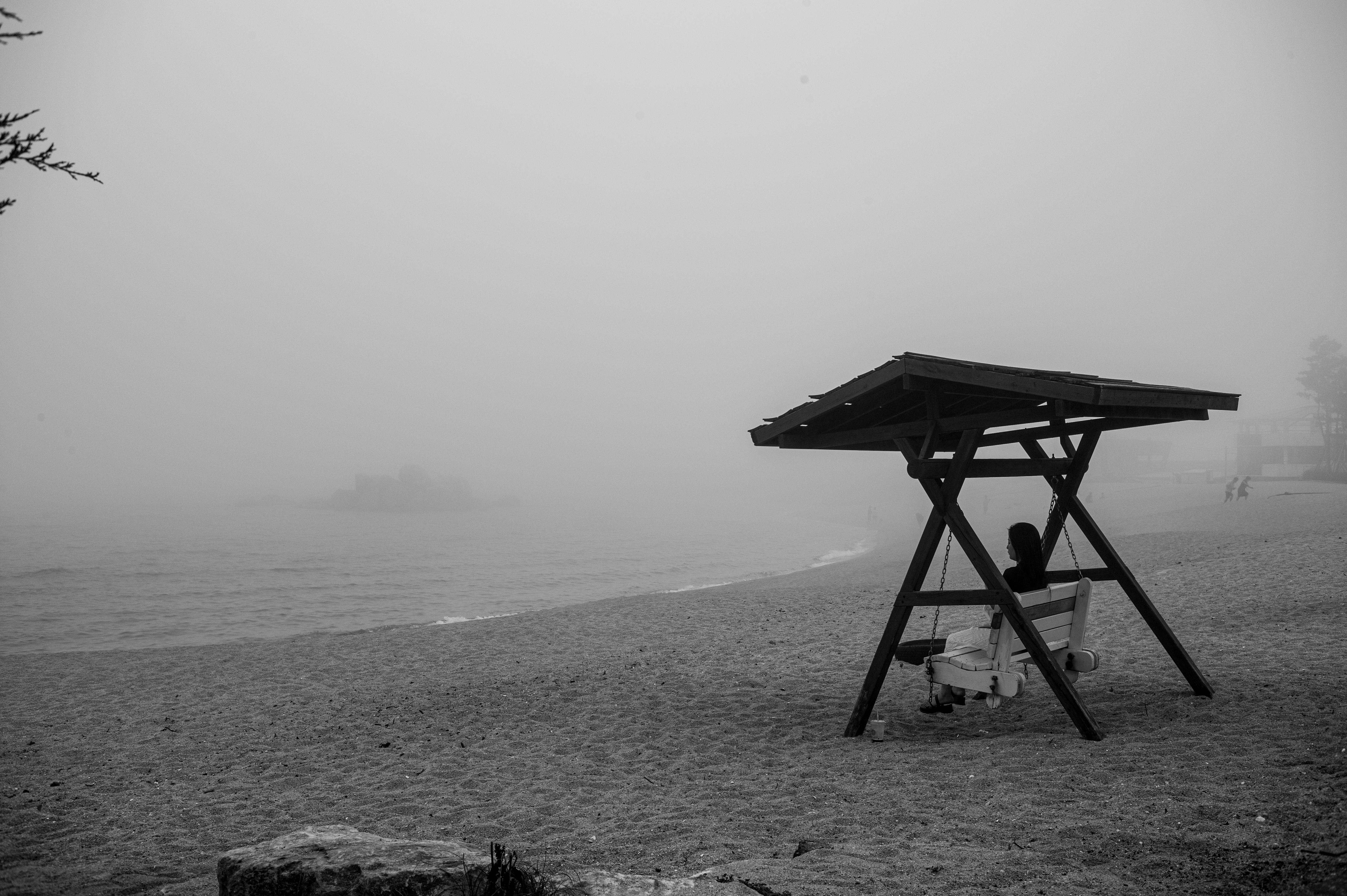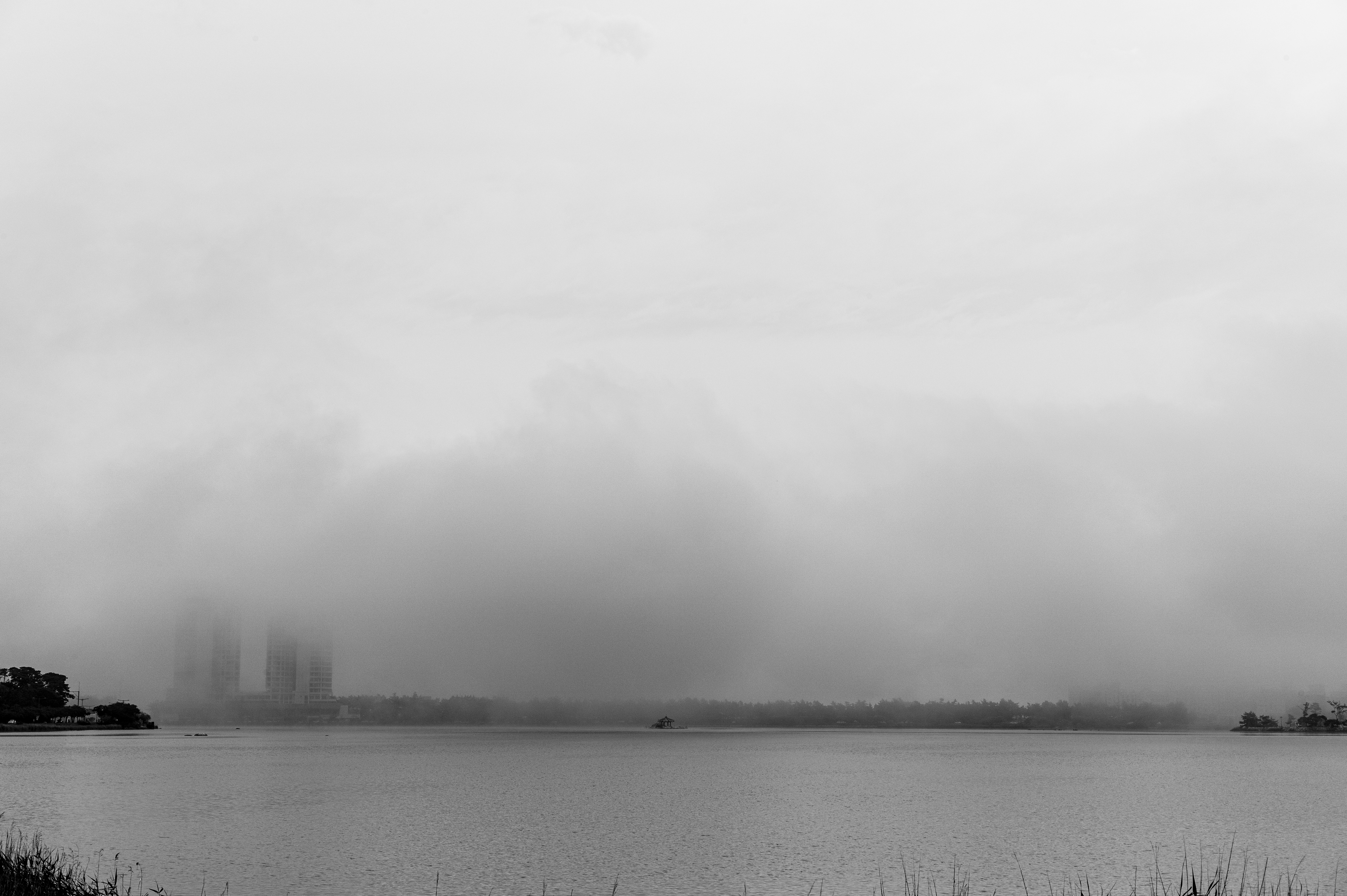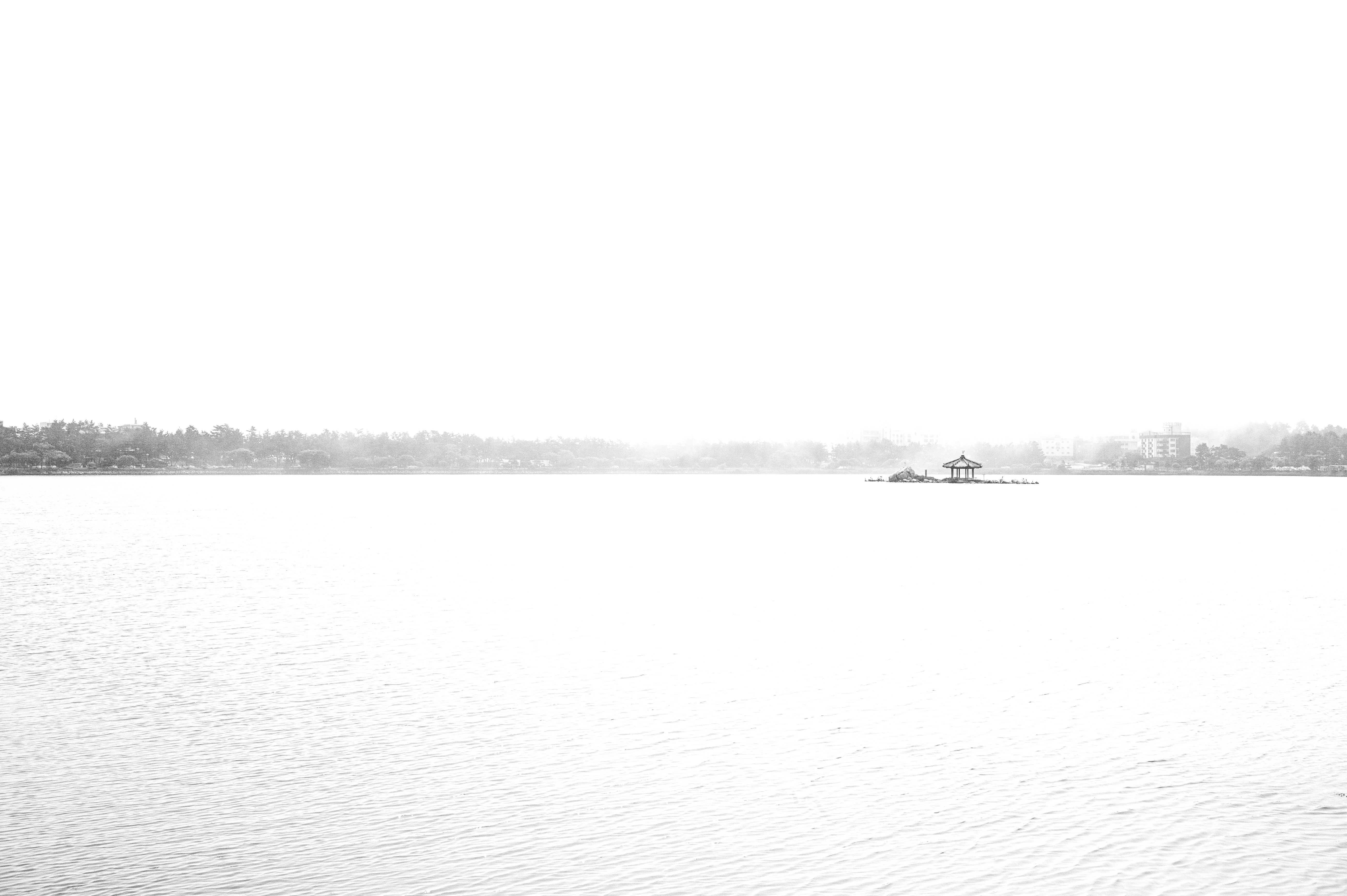 다음은 물안개가 짙게 드리운 날 찍은 흑백사진이다.