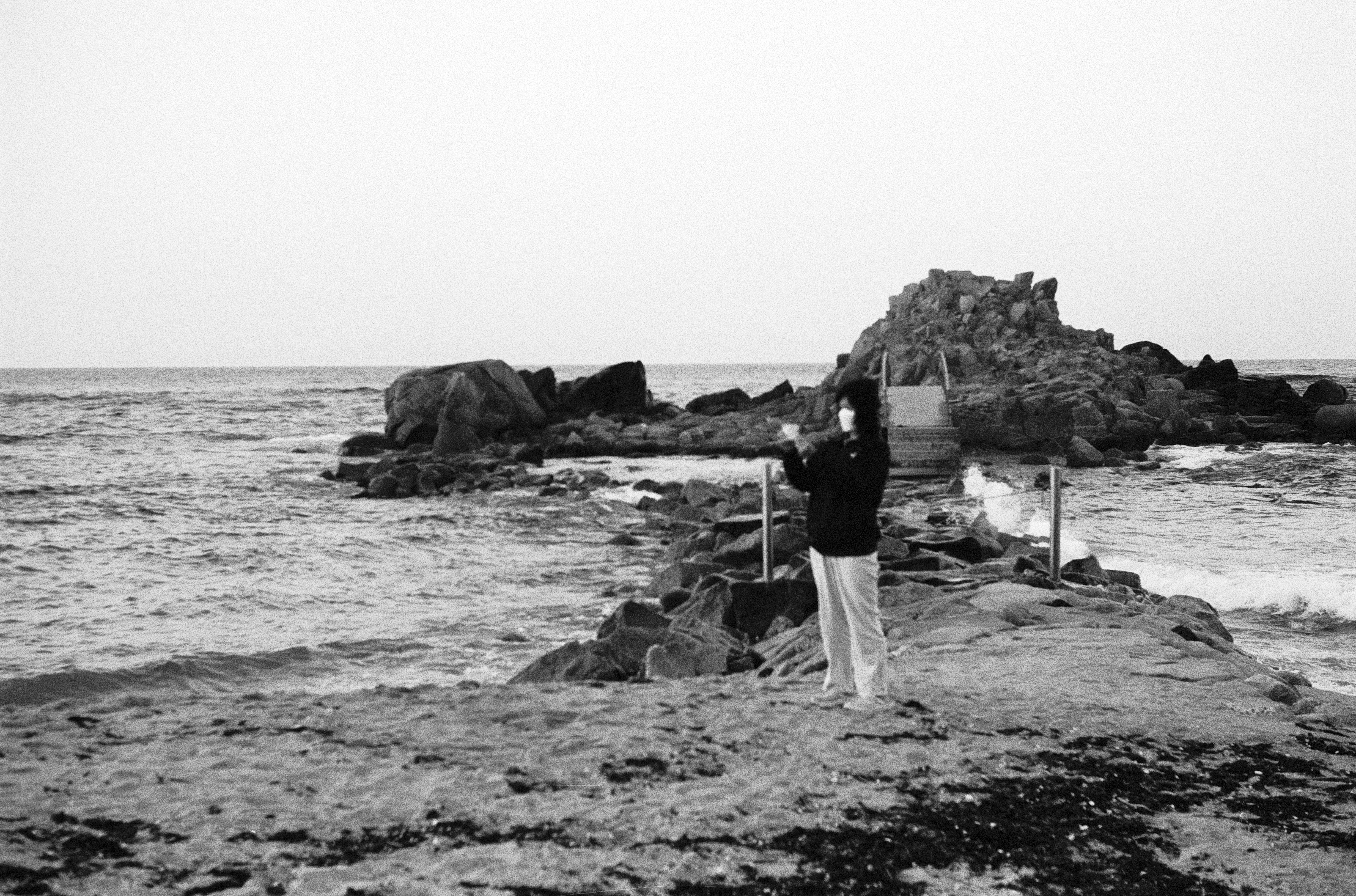 흑백 필름으로 찍은 사천해변 사진들이다.
