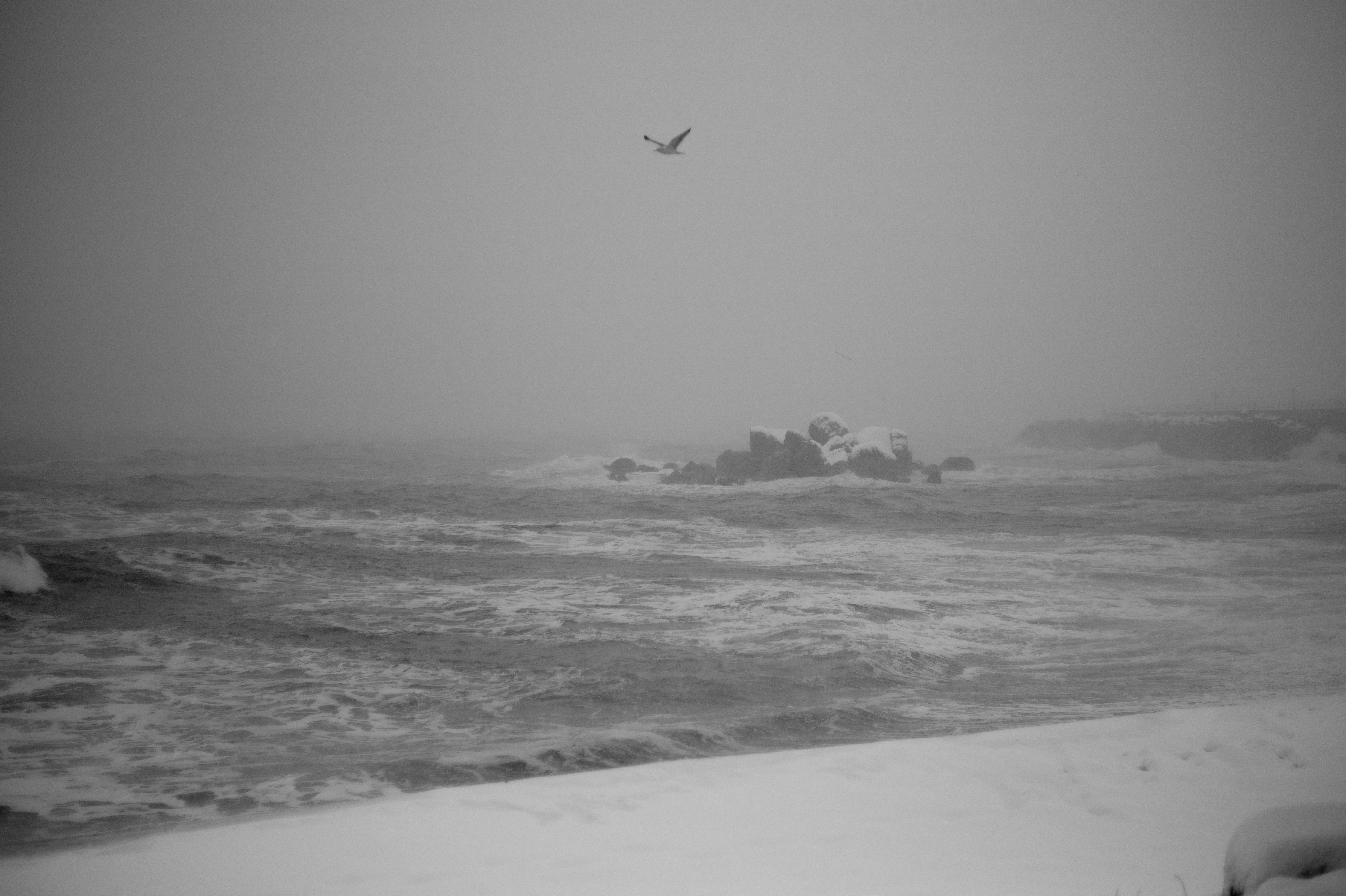 흑백으로 본 눈오는 바다