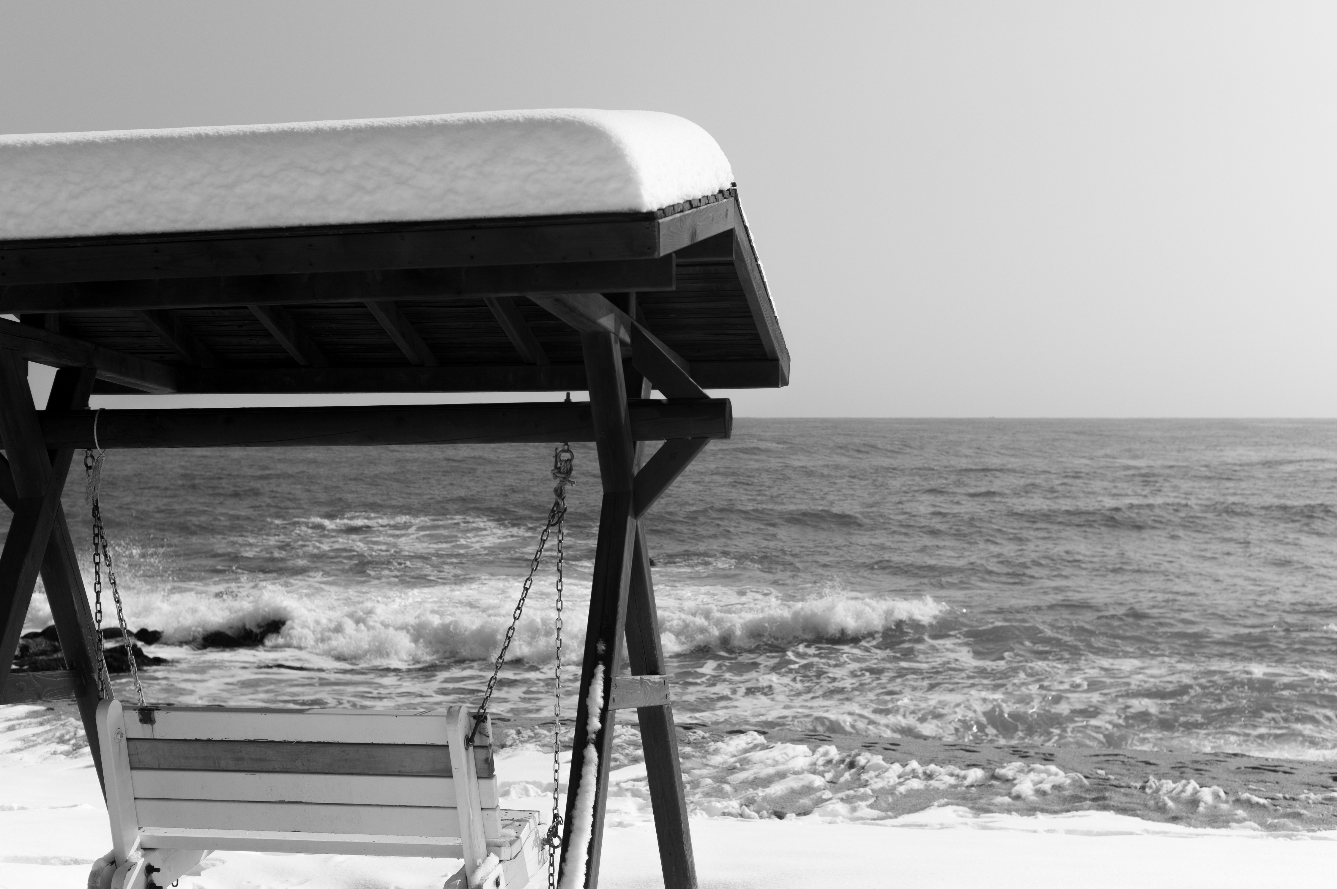흑백으로 본 눈오는 바다